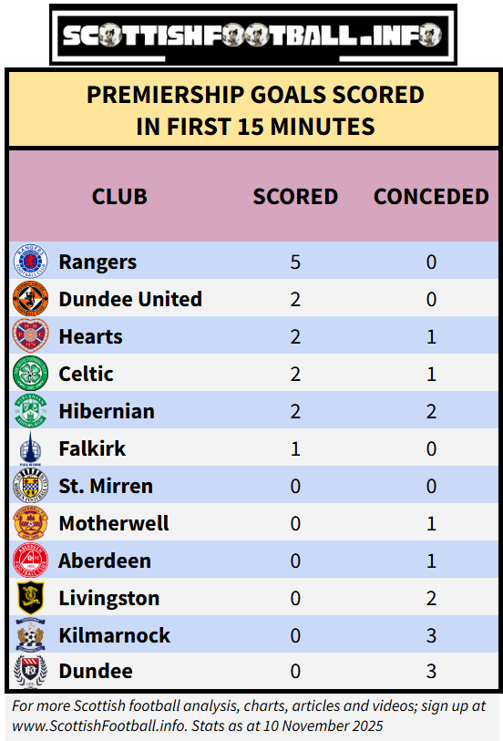 Rangers and Dundee United the only teams yet to concede an early goal in the league, while half of the league are yet to score in the first 15 minutes. Rangers have scored by far the highest number of early goals with five - four of which have came in Danny Röhl’s first three matches as manager