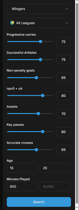 From a tactical perspective, the ideal profile is a winger with genuine creative flair -someone capable of breaking down low-block defences, delivering a high volume of progressive and attacking actions in the final third, and driving forward with purpose on the ball.