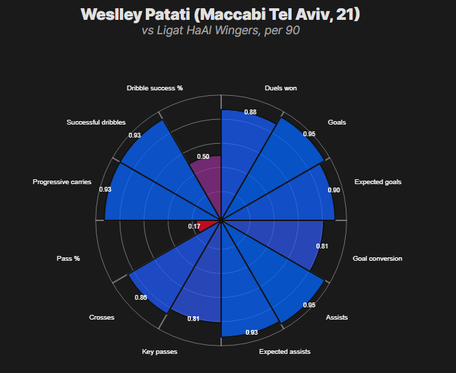 Numbers snapshot: 13G/10A in ~2700' last season; 4 G+A in 7 Europa group games; ranks 1st/2nd/3rd across multiple dribble/shoot/create metrics in Ligat Ha'Al.