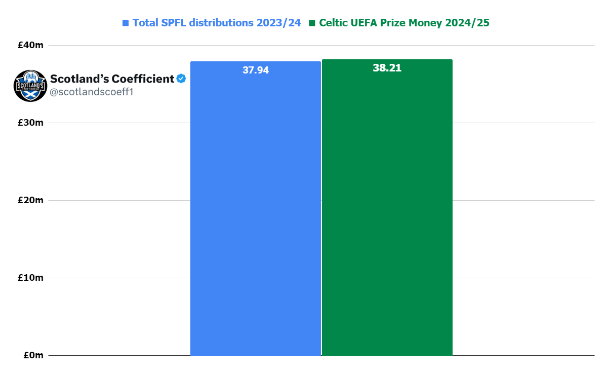 This season, Celtic have earned £38.21m from UEFA - more than the entire SPFL distribution pot last season. As league winners, Celtic received £4.5m of last season's £38m prize fund.