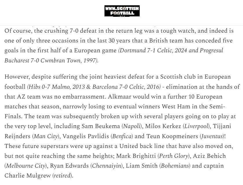 Like Hibs, Dundee United have never played in the group stages of a UEFA competition. As Scotland’s ‘fourth entrant’, Hibs need to win at least two ties to make history. Unfortunately for Dundee United, it’s three consecutive victorious ties required to reach the league phase. This will obviously be a tall order for Dundee United, given they haven’t won more than one European tie in a season since reaching the UEFA Cup Final in 1987! It’s a sad decline of what was a real European powerhouse in the 1980s - the last Scottish club to be ranked in the top 10 clubs in UEFA’s coefficient rankings (10th in 1990).