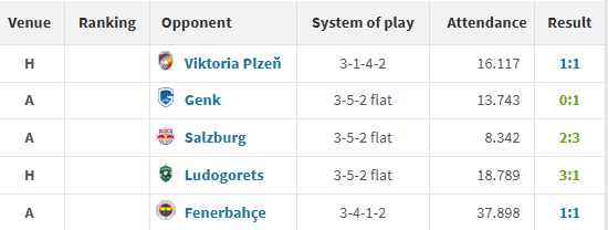 Both Plzeň and Fenerbahçe have fallen to Rangers’ sword recently. So it’s curious that those two fixtures were drawn by the Hungarians. The three wins aren’t against poor teams by any means (we’ve all seen Genk play after all) but it’s not the glittering fixture list of a team punching above their weight and sinking the big hitters in the competition.