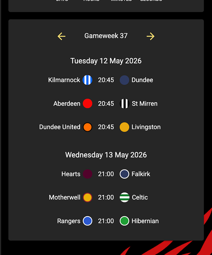 GW37: Milne (Falkirk H), Ferry (Livingston H), Fernandes (Hibs H)