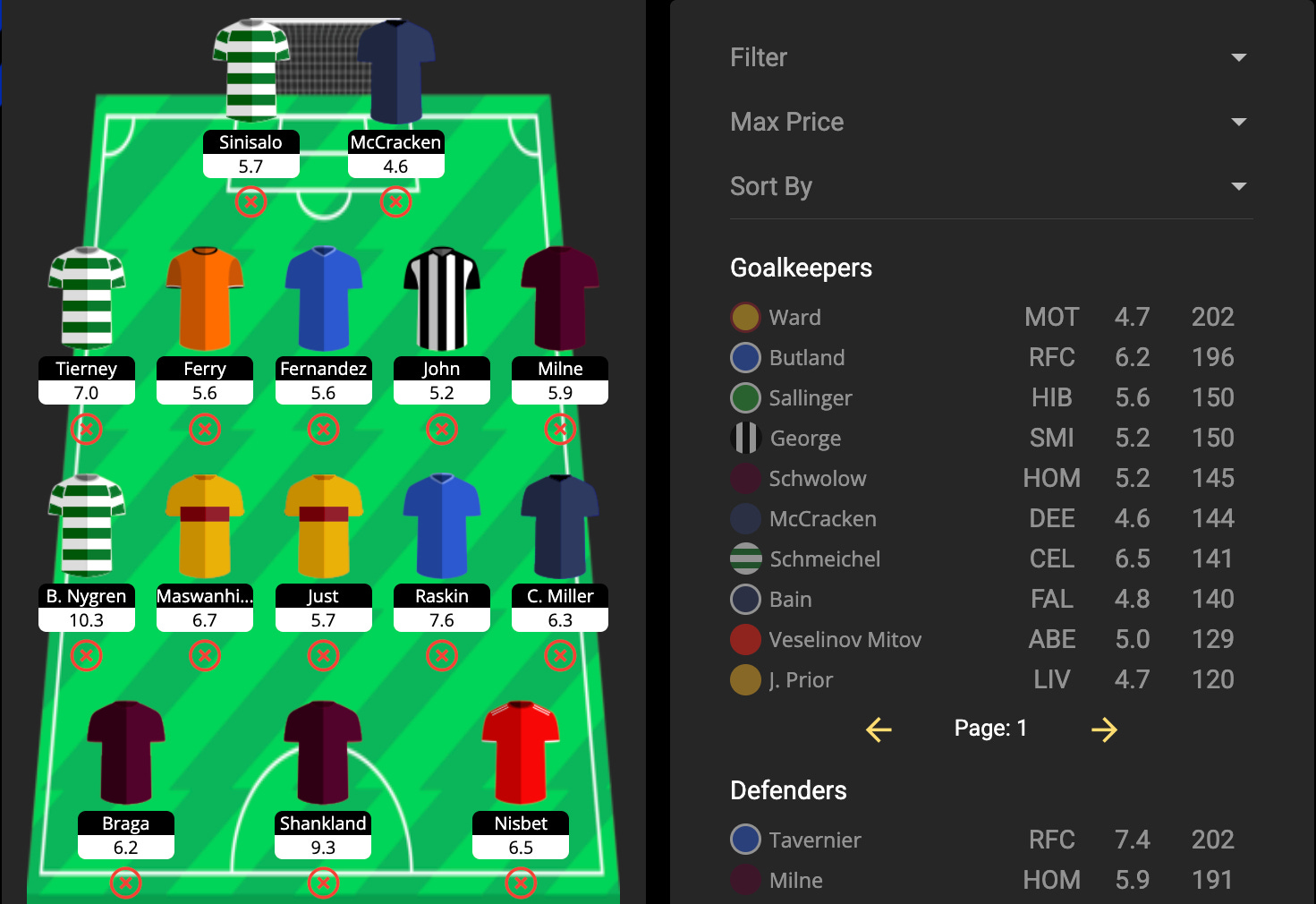The final slot, for me, goes to Harry Milne. Even if Hearts don’t keep a huge number of clean sheets in the run-in, Milne’s ability to pick up bonus and contribute in attack makes him stand out compared to other options in that price range. He is likely out for the Hibs game in GW34 but expected to return for Rangers at home in GW35.