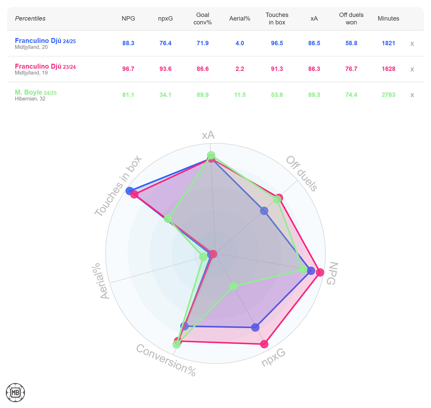 Franculino Djú, the 21-year-old Guinea-Bissau internationalist scored a hat-trick in that thumping victory at the weekend, following his brace in the first league match. Five goals already indicate that last season’s top scorer is already on track to eclipse the 16 goals he managed in all competitions. Signed on a free from Benfica’s under-23s, it would now likely cost over £10m to pry him away from Jutland. He’s already made 76 appearances, and with 49 goal involvements already, the towering striker will be short odds to make it 50 at Easter Road.