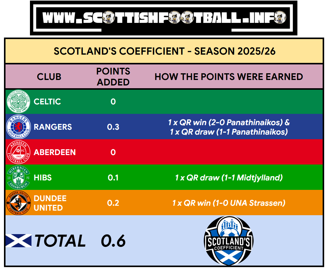 Coefficient points are awarded after 120 minutes if it gets that far, so if it’s still a draw after two hours of play on Thursday night, Hibs will add 0.1 points to Scotland’s Coefficient - regardless of the result of penalty kicks. Penalties are only used to determine who advances, the match result is officially still a draw.