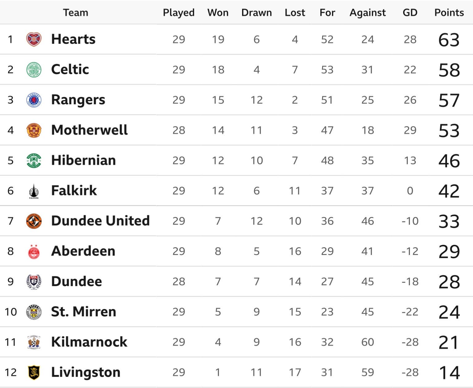 After defeating Aberdeen 2-1 at Pittodrie in their 29th league match of the season, Celtic now have a goal difference of +22. At the same stage last year, their goal difference was +75!. The Hoops were miles ahead on goal difference of the rest of the league last season; Rangers were on +33 at this stage, with Hibs the next best on just +4.