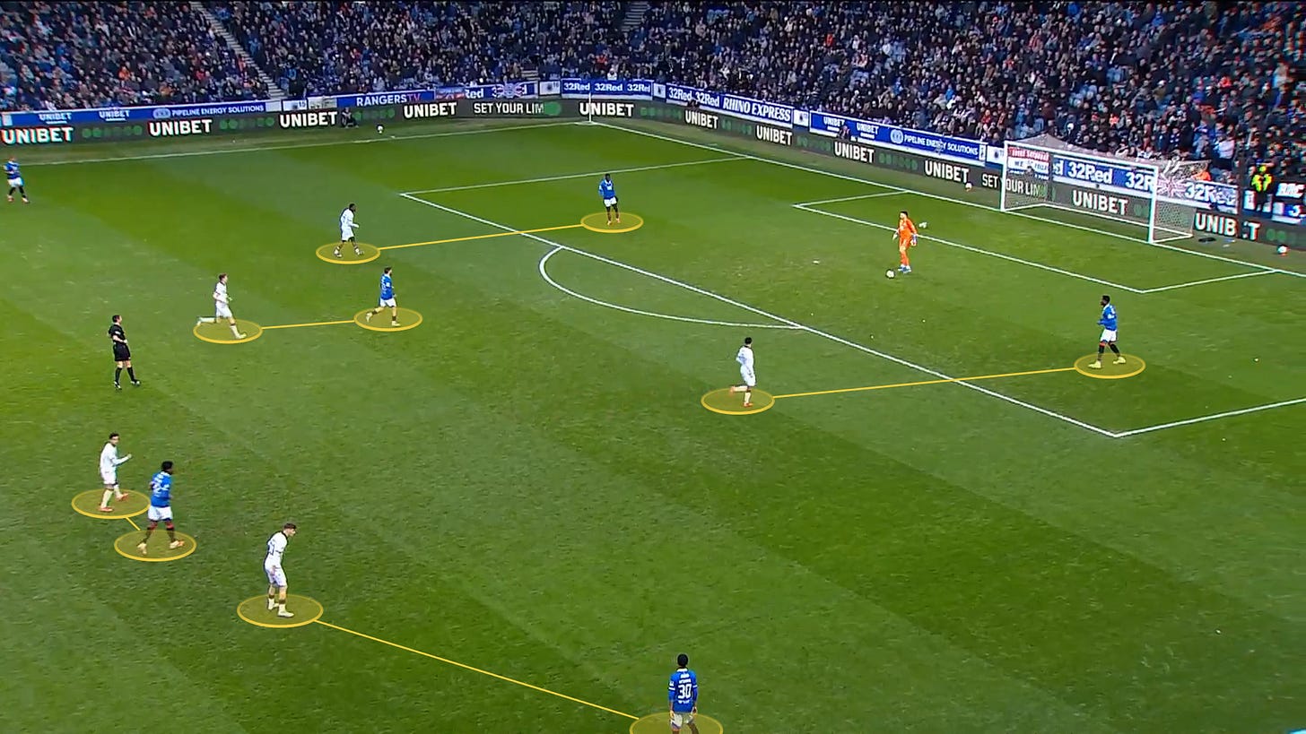 Motherwell used these pressing tactics to great effect against Rangers this week - and they dominated the ball. Rangers did show from their goal that these presses are not impenetrable and that brave football can break Motherwell down.