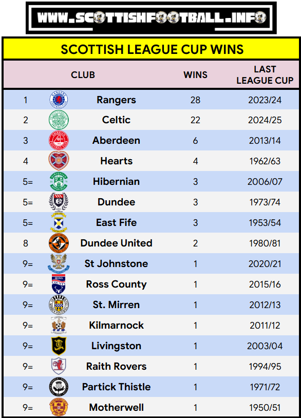 Ross County and East Fife remain the only Scottish clubs to have won the League Cup yet have never played in any UEFA competition.