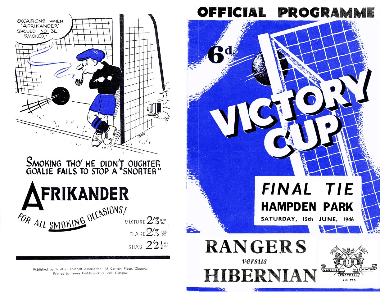 During the Second World War, the Scottish Football League (SFL) had been awarding the unofficial Southern League Cup winners a trophy which they had borrowed from the SFA. At the end of the war, the SFA asked for the return of the trophy in the summer of 1946, as they needed it for a one-off competition which was held to celebrate the end of World War II - known as the Victory cup. Rangers defeated Hibernian 3-1 in the Victory Cup Final in front of 100,000 fans, and they were awarded the trophy - which has remained with the club ever since.