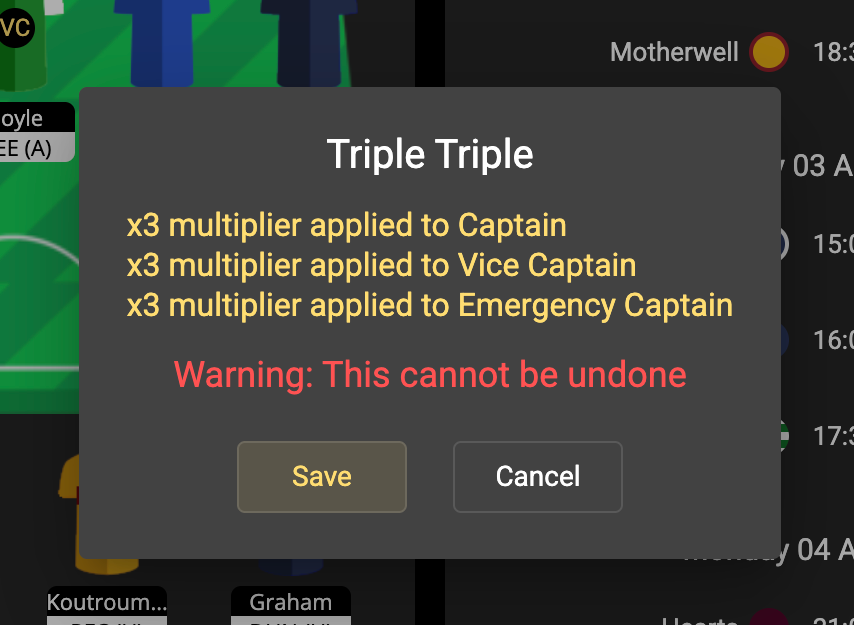 This double is best used for one explosive boost, where you can maximise this week and worry about transfers after. You should focus around your Hibs and Motherwell triple ups and have at least 5 players from both teams.