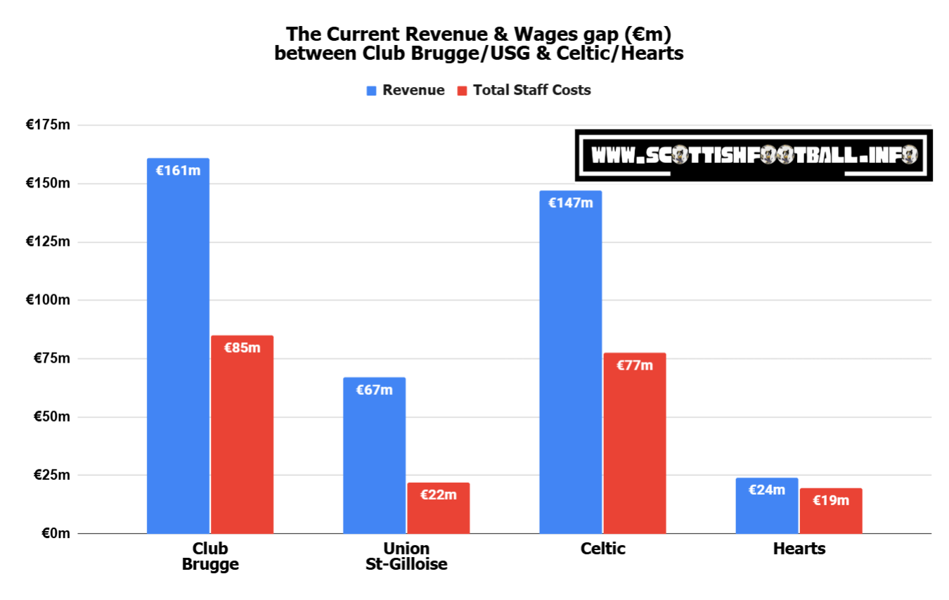 The numbers match, but that’s not Hearts and Celtic I’m talking about. That’s the situation Union Saint-Gilloise (USG) found themselves in Belgium in their first season back in the top flight after 48 years, following investment from Tony Bloom. They aimed to win the Belgian title, despite the biggest club that stood in their way - Club Brugge - having a massive financial advantage and vastly superior fanbase size. Four years later and USG currently sit 1 point clear of Brugge at the top of the table with 3 games left to play.
